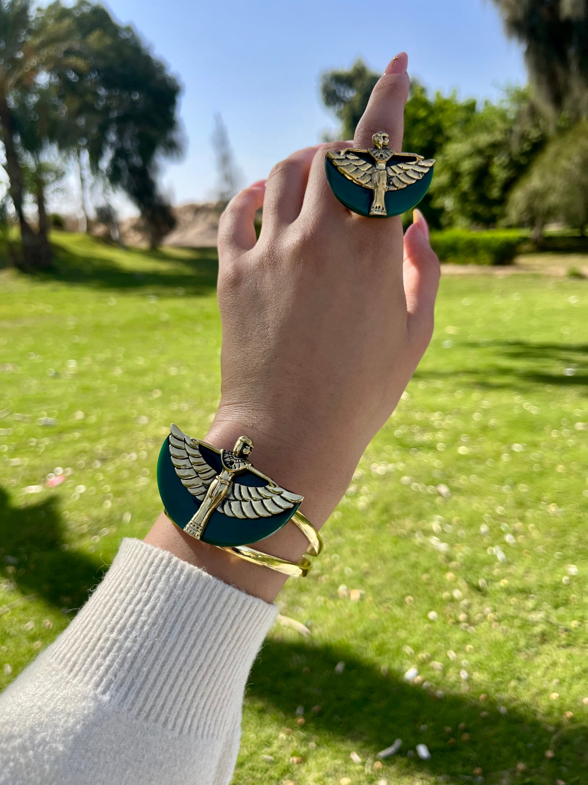She gathered the pieces of her beloved Osiris and gave him life again, becoming a symbol of devotion and rebirth. - The design of this jewelry set reflects Isis’ wings, wrapping the wearer in her protective energy.