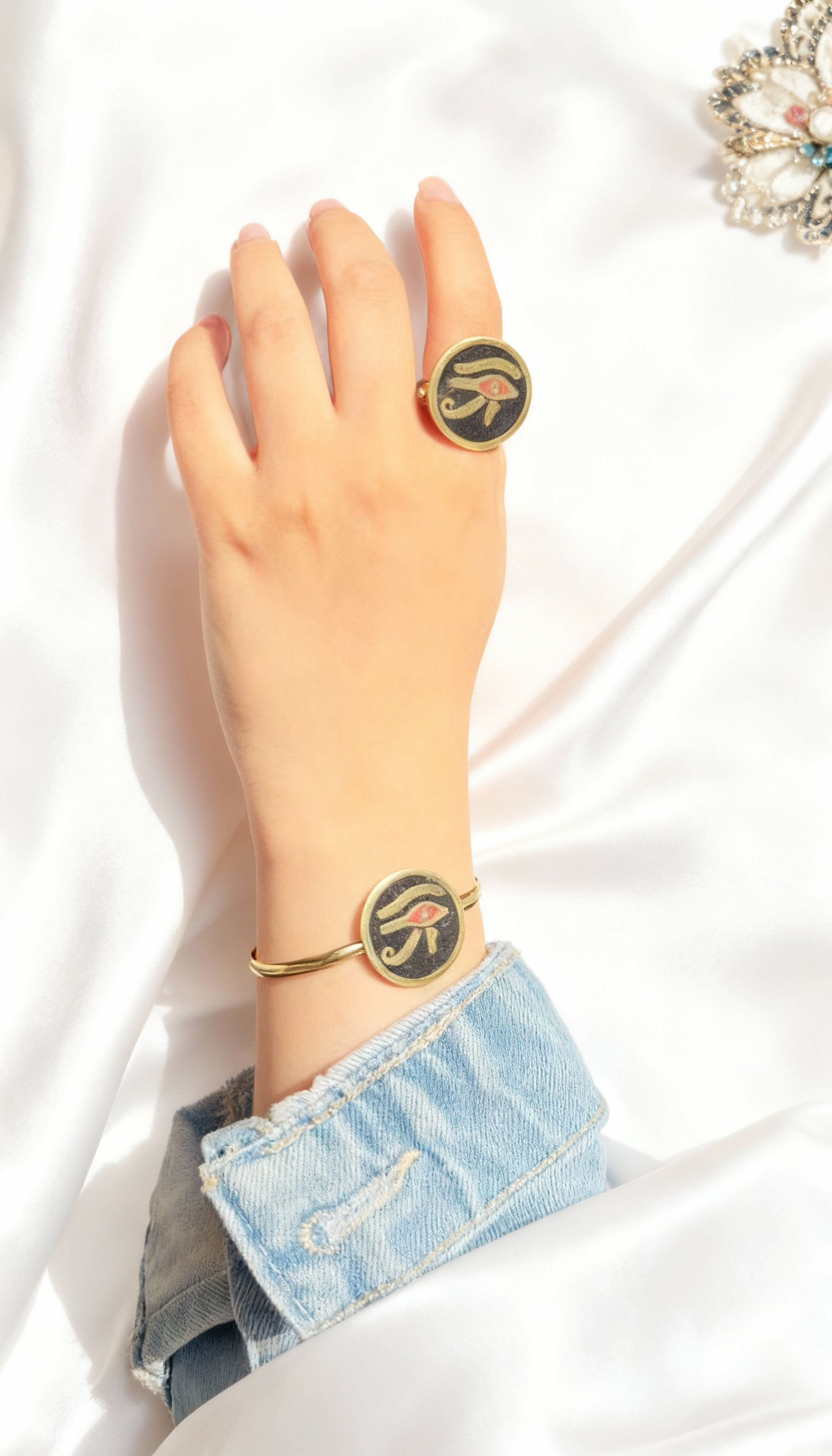 Channel the mystical power of the Pharaohs with this captivating Eye of Horus copper set.