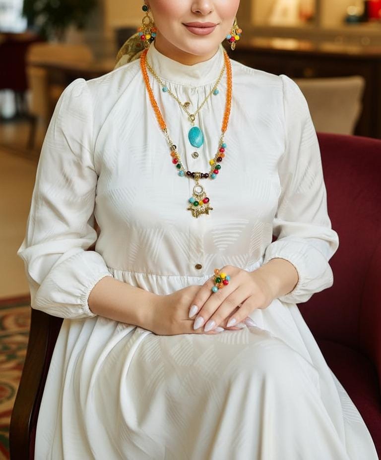 - Material: Handcrafted jewelry set featuring natural alabaster stones blended with turquoise beads